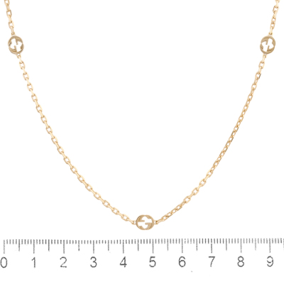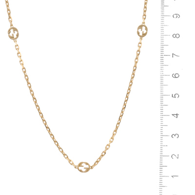 Gucci Interlocking chain Necklace with 11 interlocking G charms. Charm size 5.4 x 6mm. 18ct yellow gold. Length: 90cm. Made in Italy. Weight: 14.6g. With certificate #2578810791365515. (Pre-owned)