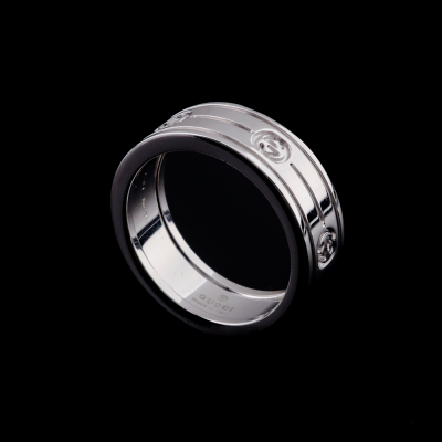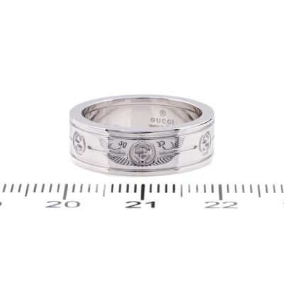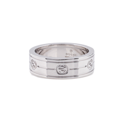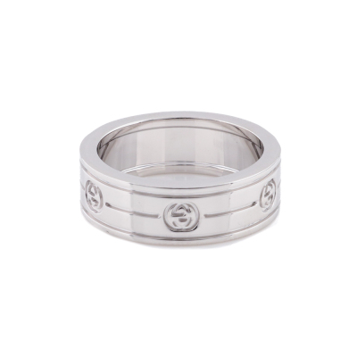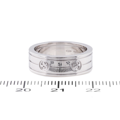 Gucci Interlocking G Ring. 18ct white gold. Gucci stamped size 11, measures as Australian size: K. Made in Italy. Band width 6.4mm. Weight: 8.1g. (Pre-owned)