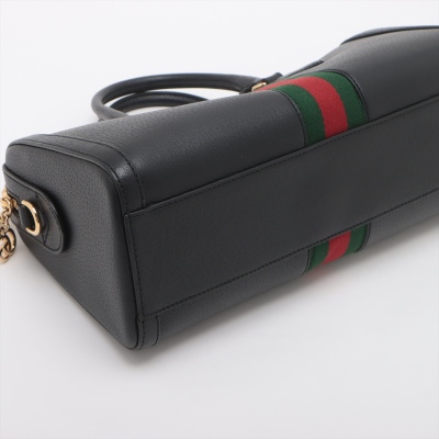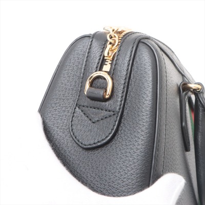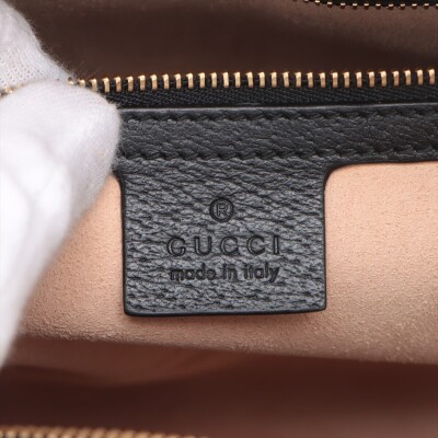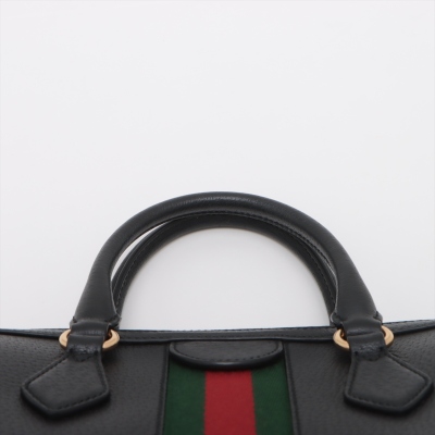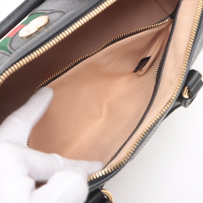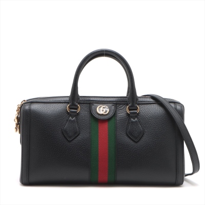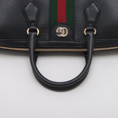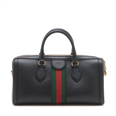 Gucci medium Ophidia Boston bag in black textured calfskin. Featuring gold-toned hardware, green and red web detailing, and adjustable and detachable shoulder strap. The 2way zippers top opens to a beige microfiber interior with a patch and zipper pockets. Approximate dimensions: 32cm(L) x 16.5cm(H) x 12.5cm(D), handle drop 8.5cm, strap drop 51.5cm. Accompanied by purchase receipt dated 01/2013. With Entrupy Certificate of Authenticity. (Pre-owned)
