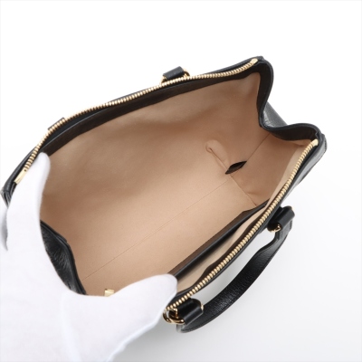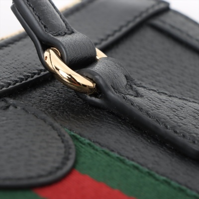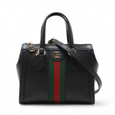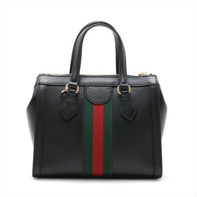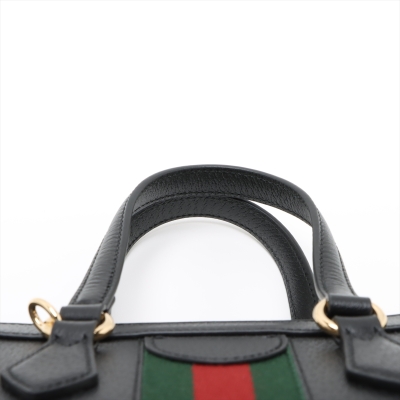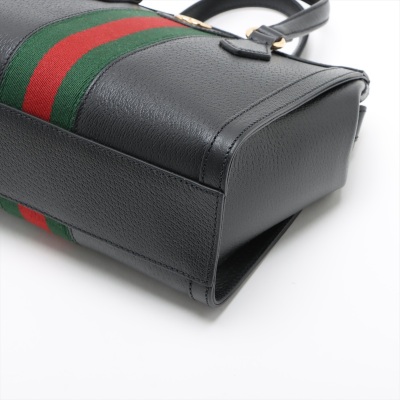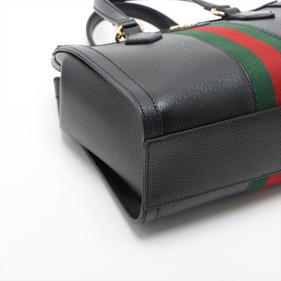 Gucci small Ophidia Web tote bag in black textured calfskin. Featuring gold-toned hardware, dual top handles, interlocking GG logo at front, and green & red web stripe detail. The zipper top opens to a beige microfibre interior with a patch pocket. Approx. dimensions: 24cm(L) x 21cm(H) x 11cm(D), handle drop 10cm, adjustable & detachable shoulder strap drop 62cm. Accompanied by Gucci dustbag. With Entrupy Certificate of Authenticity. (Pre-owned)