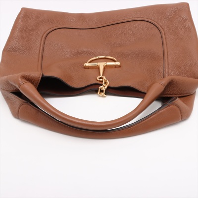 Gucci Softbit Maxi tote in brown grained soft leather. Featuring gold-toned hardware, double rolled handles, and an oversized half horsebit magnetic clasp. This opens to a brown microfibre-lined interior with a detachable zippered leather pouch. Approximate dimensions: 42cm(Base-W) x 31cm(H) x 13cm(D), with a 16cm shoulder drop. Accompanied by a Gucci dustbag. With Entrupy Certificate of Authenticity.