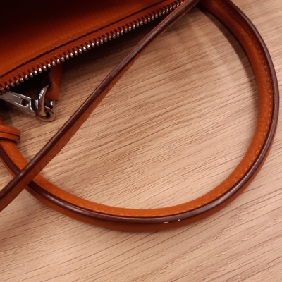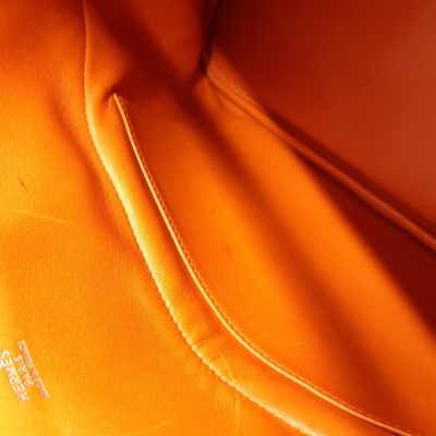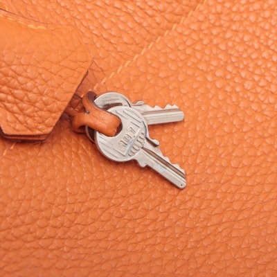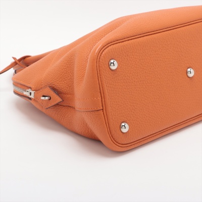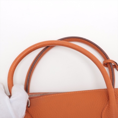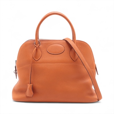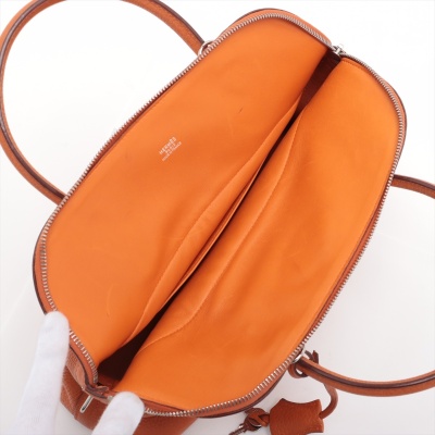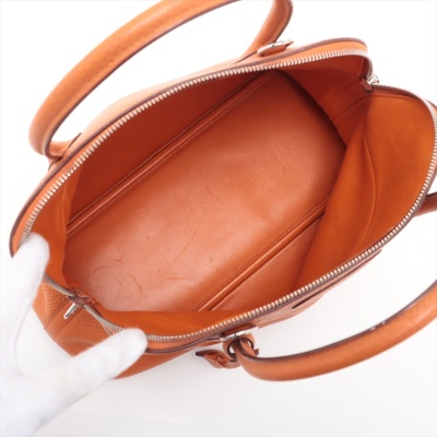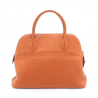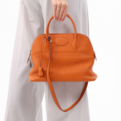 Hermès Bolide 31 handbag in orange Taurillon Clemence (square I: 2005). Featuring silver-toned hardware, double top handles, and padlock with two keys inside a clochette. The zipper on top opens to a matching orange smooth leather lining interior with a patch pocket. Approximate dimensions: 31.5cm(Base-L) x 23cm(H) x 12.5cm(D), handle drop 10cm shoulder drop: 43cm. Accompanied by Hermès dustbags. With Entrupy Certificate of Authenticity. (Pre-owned)