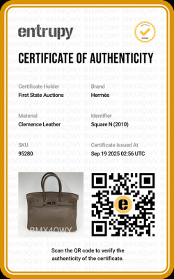 Hermes Birkin 35 in Etoupe Taurillon Clemence leather (Square N: 2010). Featuring silver-toned hardware, rolled leather top handles, frontal flap with closure straps and turn-lock mechanism. The front flap opens to a colour matching leather interior with patch and zipper pocket. Approximate dimensions: 35cm(L) x 27cm(H) x 19cm(D), handle drop 10cm. Accompanied by Hermes keys in clochette, padlock, dustbag & box. With Entrupy Certificate of Authenticity. (Pre-owned)