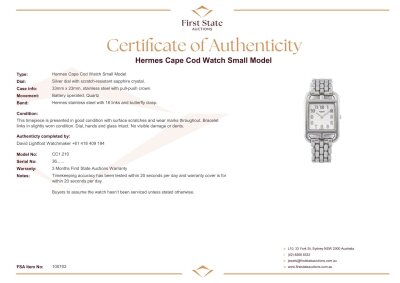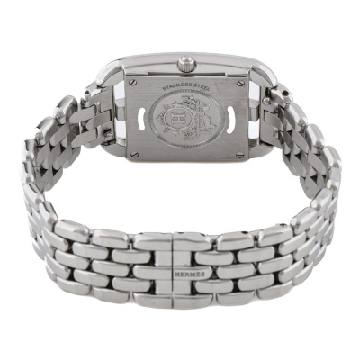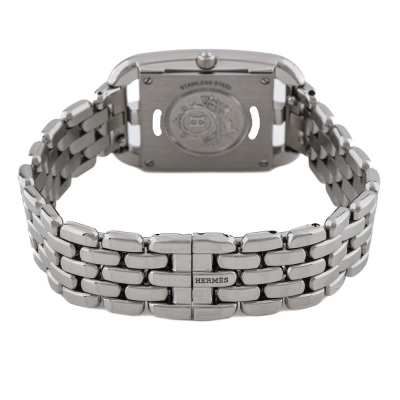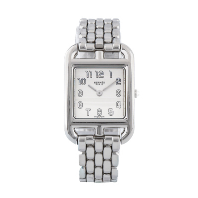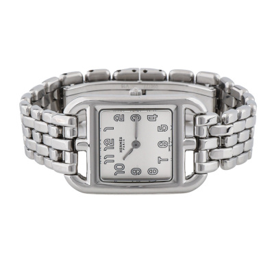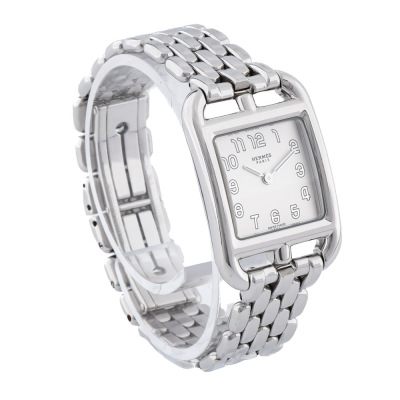 Hermes Cape Cod small model stainless steel quartz ladies watch. Silver dial, case diameter: 33mm x 23mm, max wrist size: 15cm, Swiss made. Ref# CC1.210A. With Hermes stainless steel bracelet and clasp. With Certificate of Authenticity, Hermes International Guarantee Booklet dated 27/11/2023 and Hermes box. With 3 months warranty of FSA. Weight: 54.6g