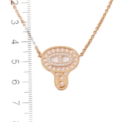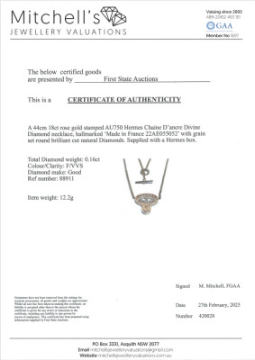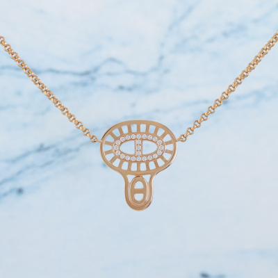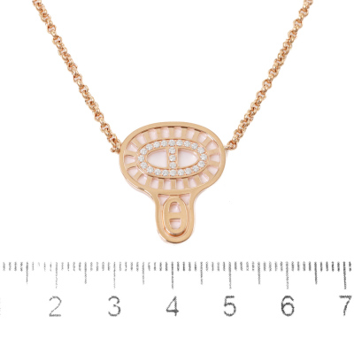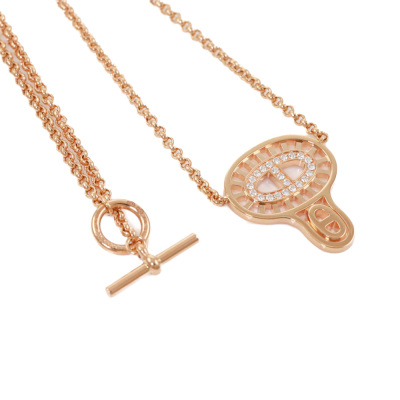 Hermes Chaine d ancre Divine pendant, small model with round Natural Diamonds of 0.16ct. Motif size: 2.2cm x 1.9cm. 18ct rose gold with 18ct rose gold attached chain. Length: 44cm. Made in France. Weight: 12.2g.With Certificate #420028. (Pre-owned)