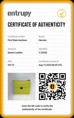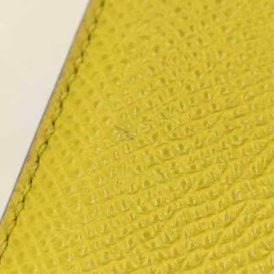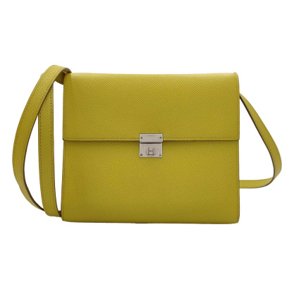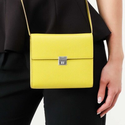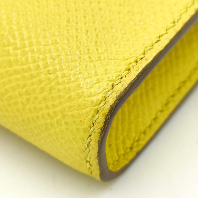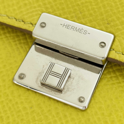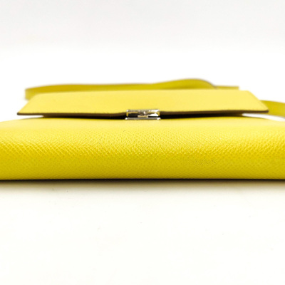 Hermes Click 16 crossbody bag in Mustard yellow Epsom leather (Y: 2020). Featuring silver-toned hardware, single detachable leather shoulder strap, and Hermès 'click' closure. This opens to a brown leather interior with four card slots and two patch pockets. Approximate dimensions: 16cm(L) x 14cm(H) x 2.5cm(D), strap drop 56cm. With Entrupy Certificate of Authenticity. (Pre-owned)