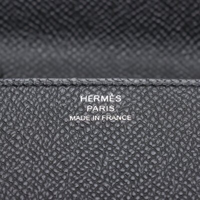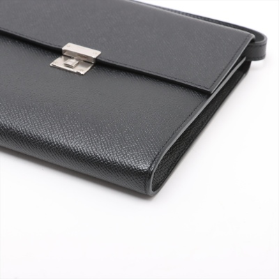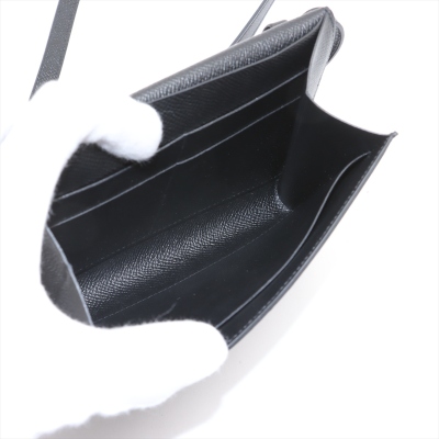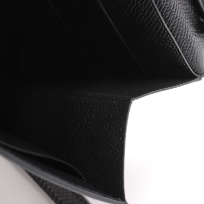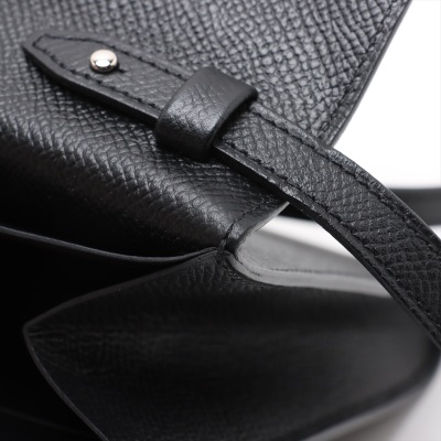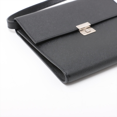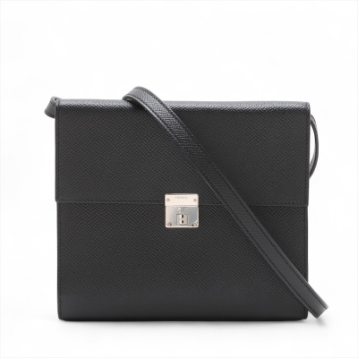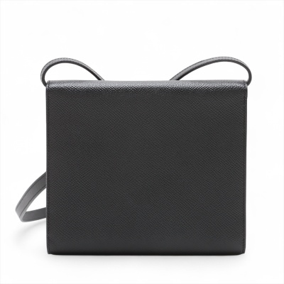 Hermes Click 16 crossbody bag in black Epsom leather (C: 2018). Featuring silver-toned hardware, single detachable leather shoulder strap, and Hermes click closure on flap. This opens to a black leather interior with four card slots and two patch pockets. Approximate dimensions: 16cm(L) x 14cm(H) x 2.5cm(D), detachable strap drop 56cm. Accompanied by Hermes dustbag and box. With Entrupy Certificate of Authenticity. (Pre-owned)