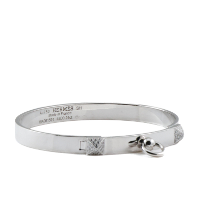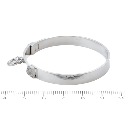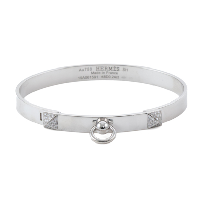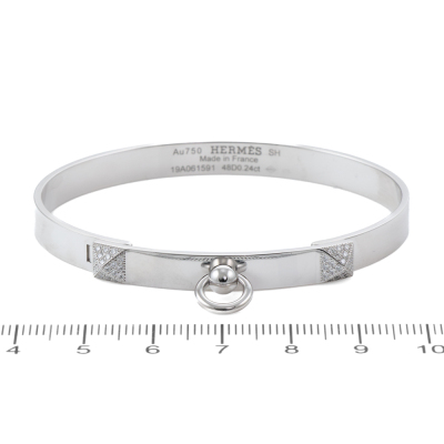 Hermes Collier De Chien bracelet, small model with 48 round Natural Diamonds totalling 0.24ct. 18ct white gold. Stamped size: SH. Oval shape inner circumference approximately 15.5cm. Width: 6mm. Made in France. Weight: 24.4g. With Hermes Certificate dated: 09/02/2021. (Pre-owned)