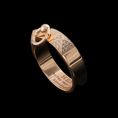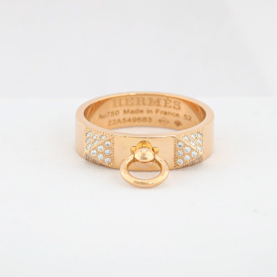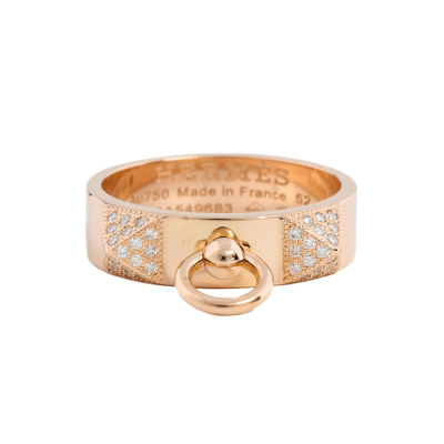 Hermes Collier De Chien ring, small model with 48 round Natural Diamonds totalling 0.19ct. 18ct rose gold. Hemes stamped size 52, measures as Australian size: L 1/4 - ring resizing is not recommended. Made in France. Weight: 6.2g.