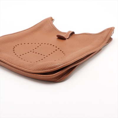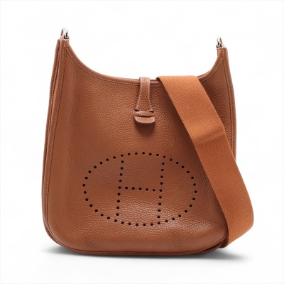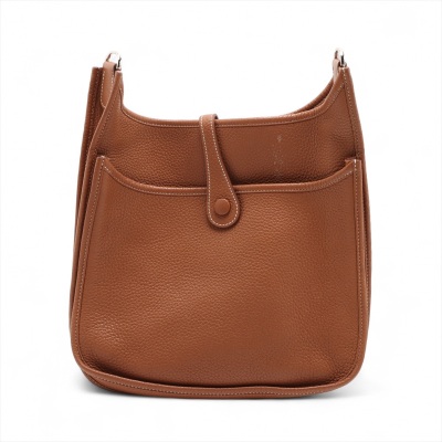 Hermes Evelyne III 29 in Brown Taurillon Clemence leather (Square P:2012). Featuring silver-toned hardware, perforated H oval at front, and a detachable canvas strap. The snap button closure opens to a suede lining interior, and an exterior patch pocket. Approximate dimensions: 28cm(L) x 31cm(H) x 7cm(D), with a 71cm adjustable strap drop. Accompanied by a Hermes dustbag. With Entrupy Certificate of Authenticity. (Pre-owned)