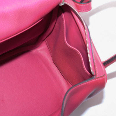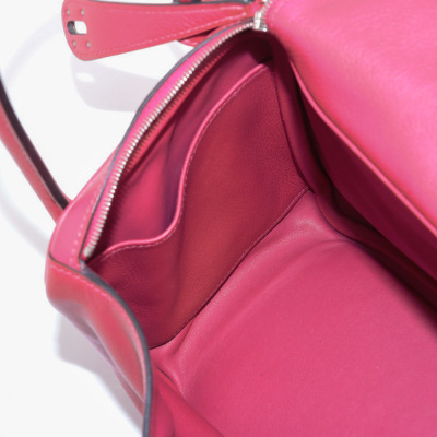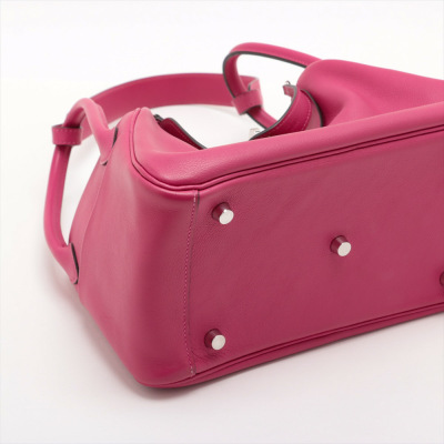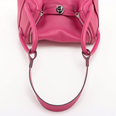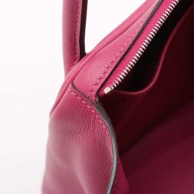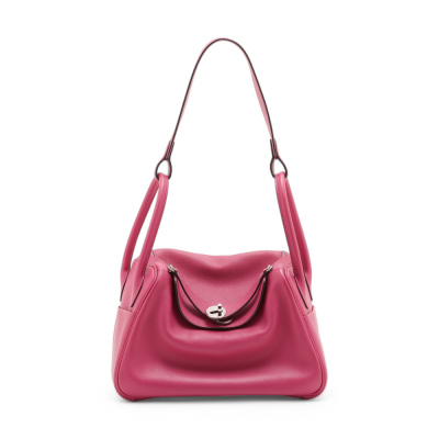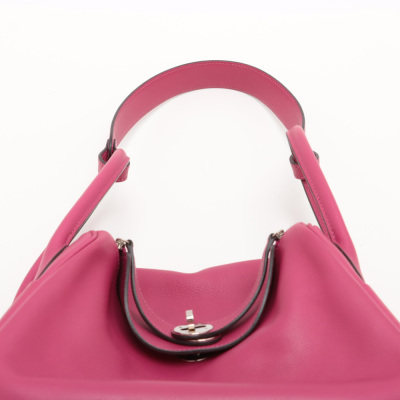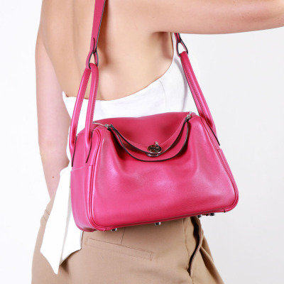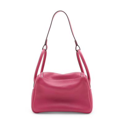 Hermes Lindy 26 shoulder bag in rose purple in Evercolor leather (A: 2017). Featuring silver tone hardware, exterior pockets on sides, cross-over top flap with zip and turned-lock closures. This opens to a colour matching leather spacious interior with side patch pockets. Approximate dimensions: 26cm(L) x 16.5cm(H) 13.5cm(D), 11cm handle drop and 30cm shoulder drop. Accompanied by Hermes dustbag. With Entrupy Certificate of Authenticity. (Pre-owned)