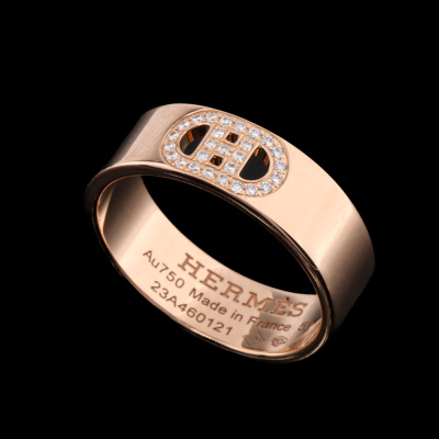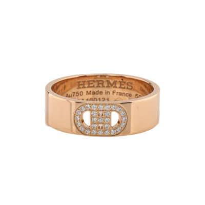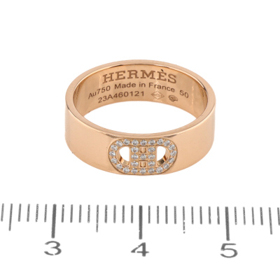 Hermes H Dunkle Diamond ring with 27 Diamonds totalling 0.07ct. 18ct rose gold. Stamped size 50. Width: 5.5mm. Made in France. With Hermes box and Hermes Certificate dated 30/10/2024.