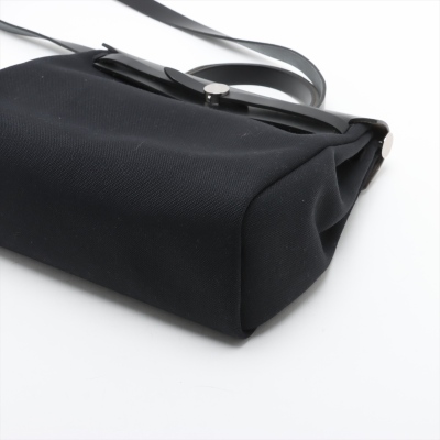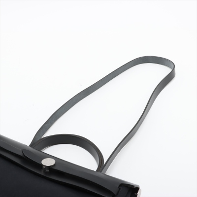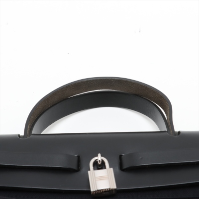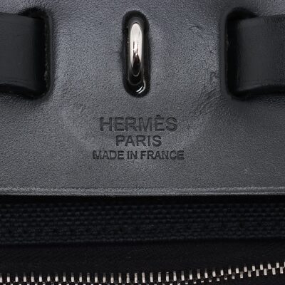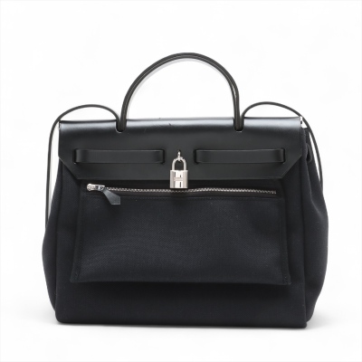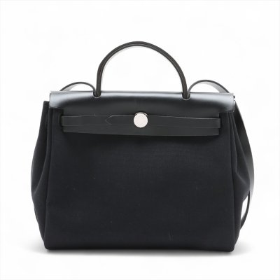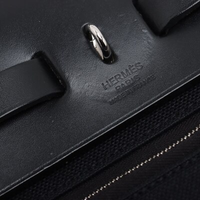 Hermes Herbag zip 31 in black canvas and smooth leather (D:2019). Featuring silver-toned hardware, a rear exterior zip pocket, a leather top crest with a top flat handles. The strap closure opens to a tonal canvas interior with a detachable zipper pouch. Approx dimensions: : 31cm(L) x 25cm(H) x 11cm(D), 11cm handle height and 46cm shoulder height. Accompanied by padlock, keys in crochet & dustbags. With Entrupy Certificate of Authenticity. (Pre-owned)