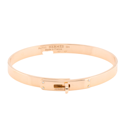 Hermes Kelly bracelet, small model with 4 round Diamonds totalling 0.02cts. 18ct rose gold. Size: SH. Inner circumference: 15.8cm. Width: 5.5cm. Made in France. Weight: 22.7g. With Certificate #9928255960442054. (Pre-owned)