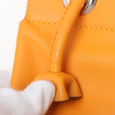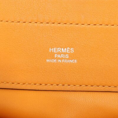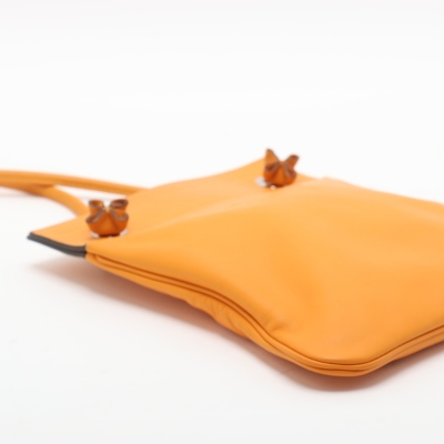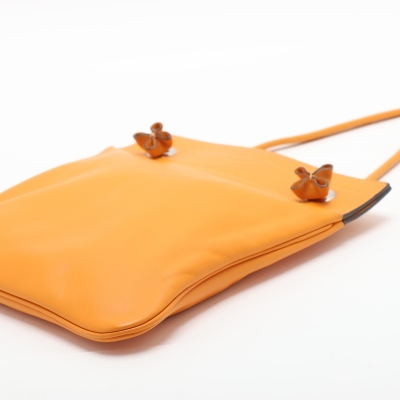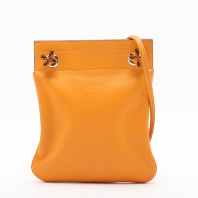 Hermes mini Aline shoulder bag in mandarin swift leather (Stamp C: 2018). Featuring silver-toned hardware, embossed 'Hermes' logo at front, and a leather strap with decorative ends. The top opens to a matching mandarin leather interior. Approximate dimensions: 20cm(W) x 23cm(H) x 1cm(D), with a 48cm strap drop. Accompanied by a Hermes dustbag. With Entrupy Certificate of Authenticity.