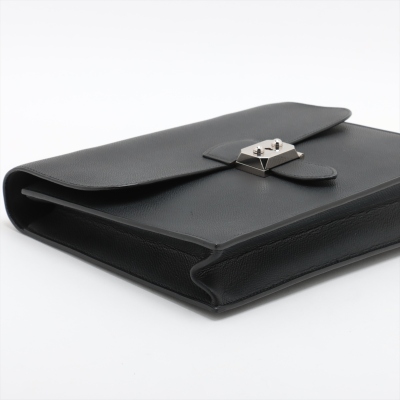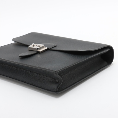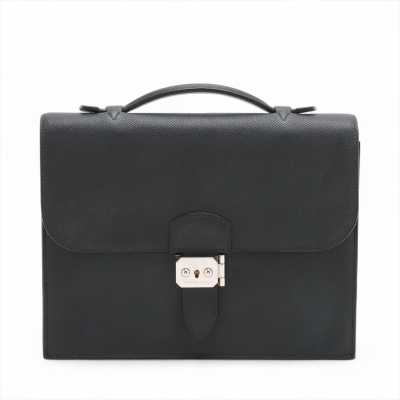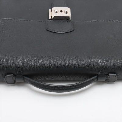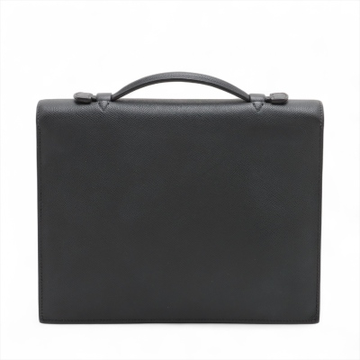 Hermes Sac a Depeches 27 in black Epsom leather (square J: 2006). Featuring silver-toned hardware, flat top handle, and push-lock closure at front flap. This opens to a black microfibre interior with a front flat pocket. Approximate dimensions: 27cm(L) x 21cm(H) x 6cm(D), handle drop 3cm. Accompanied by detachable clochette with key, Hermès dustbag, and box. With Entrupy Certificate of Authenticity. (Pre-owned)
