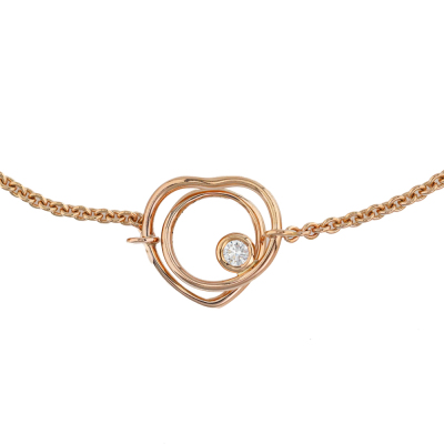 Hermes Vertige Coeur bracelet very small model, SH with round Natural Diamonds of 0.05ct. Motif size: 14cm. 18ct rose gold. Length: 16cm. Made in France. Weight: 4.0g. (Pre-owned)