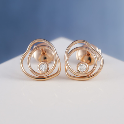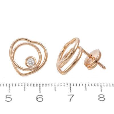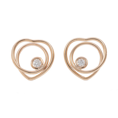 Hermes Vertige Couer earrings, very small model with round Natural Diamonds totalling 0.11ct. 18ct rose gold. Motif size: 12.4mm x 13mm. Weight: 3.8g. With Hermes box. (Pre-owned)