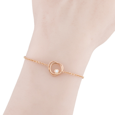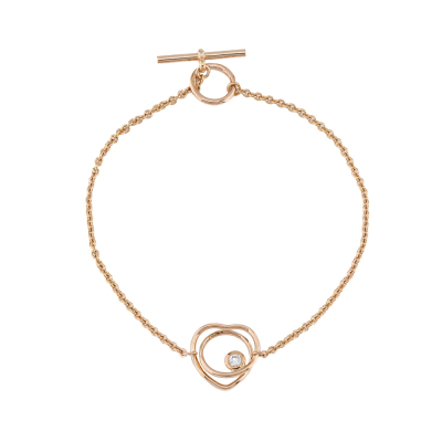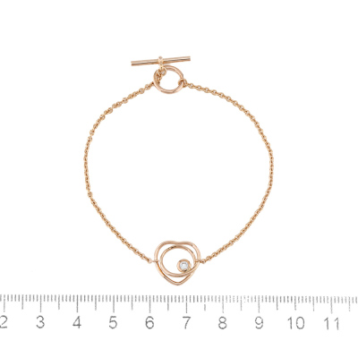 Hermes Vertiges Cool bracelet, very small model, SH with a round Natural Diamond approximately of 0.05ct. 18ct rose gold. Made in France. Motif size: 1.2mm. Length: 17.5cm. Weight: 3.9g. (Pre-owned)