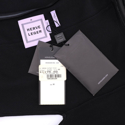 Herve Leger Statement Black Mini Dress. Size: marked size M. With Tag still connected. (Pre-owned)*