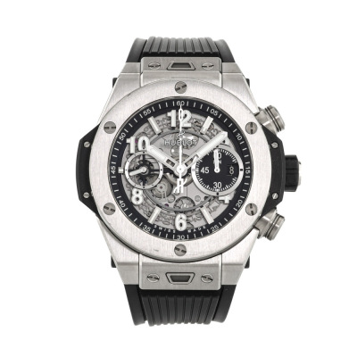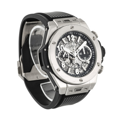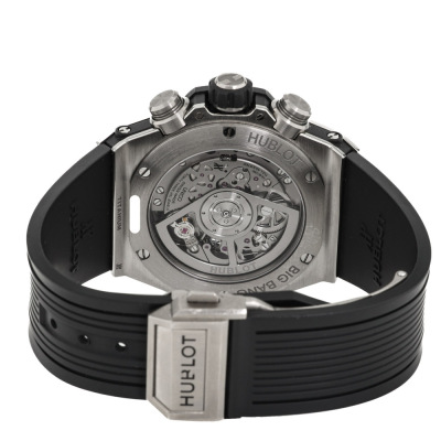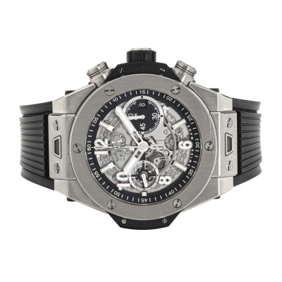 Hublot Big Bang Unico titanium automatic mens watch, Skeleton dial, date, case diameter: 44m, adjustable max wrist size: 20cm, Swiss made. Ref #421.NX.1170.RX. With Hublot black rubber strap and clasp. With Certificate of Authenticity. 3 month FSA warranty. Weight: 118.8g.