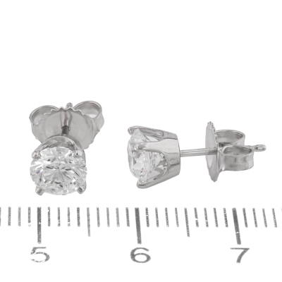 Diamond stud earrings with 2 round brilliant cut Natural Diamonds totalling 1.57ct (with GIA Dossier Reports graded as D Internally Flawless# 1232706787 & E Internally Flawless# 1232707018). 18ct white gold. Weight: 1.8g.