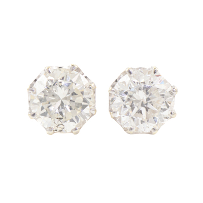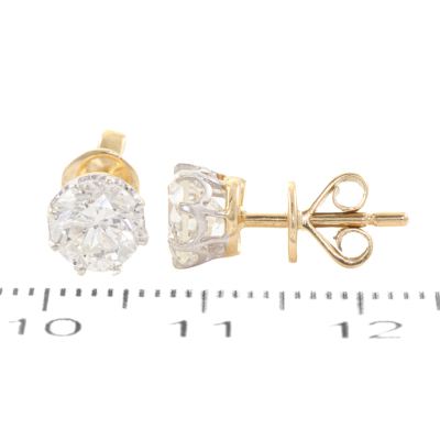 Kozminsky Diamond stud earrings with 2 round brilliant cut Natural Diamonds totalling 2.02ct (Kozminsky graded as H P1. FSA estimated grading: H-I SI-P1). 18ct yellow & white gold with 18ct yellow gold backs. Weight: 2.2g. with copy of Kozminsky Invoice dated 06/12/01 and Valuation Certificate dated 31/10/14. With Kozminsky box. (Pre-owned)