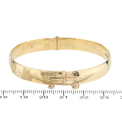 Leaf Pattern 9ct Gold Bangle 22.6g