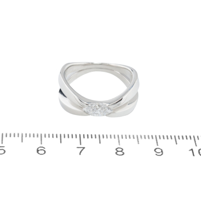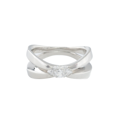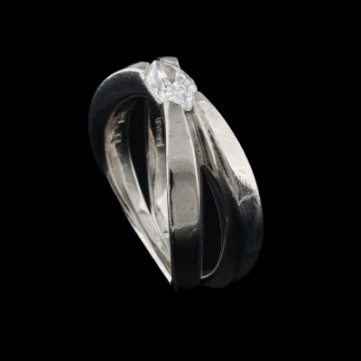 Levendi Diamond Millenium engagement ring with a centre marquise cut Natural Diamond of approximately 0.55ct (Estimated grading: E-F VS). Platinum 950 (XRF tested, stamped platinum). Ring size N1/2 - ring resizing is not recommended. Band width: 3.1mm - 9.4mm. Weight: 13.5g. (Pre-owned)
