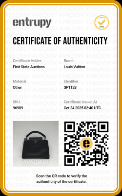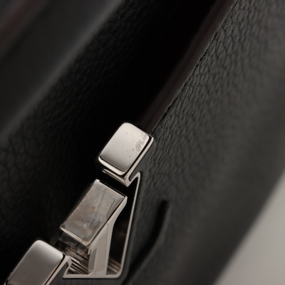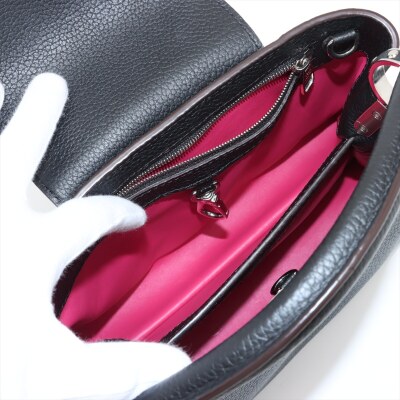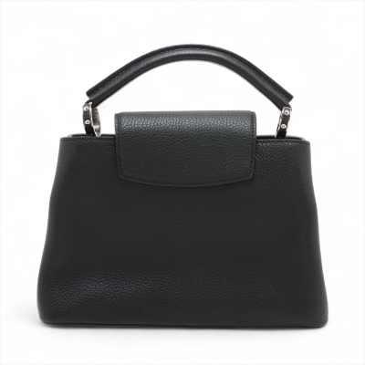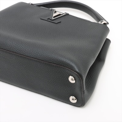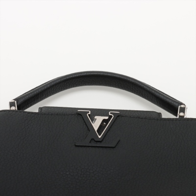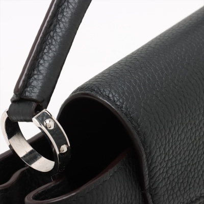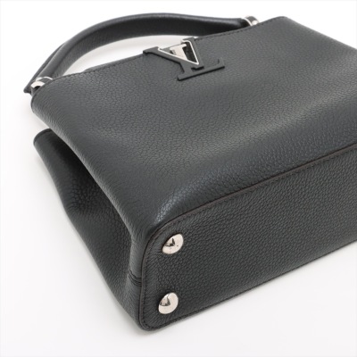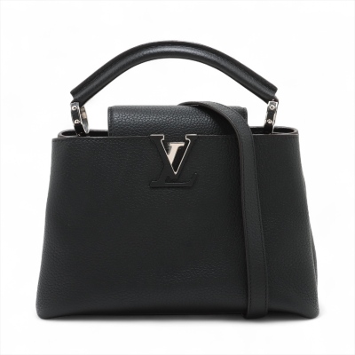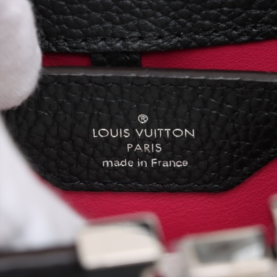 Louis Vuitton Capucines BB in black full grain Taurillon leather. Featuring silver-tone hardware, signature LV logo, single top handle & adjustable, removable shoulder strap. The top flap & hook clasp open to a pink lining and compartmented interior with a zipped pocket. Approx. dimensions: 26.5cm(L) x 18cm(H) 9cm(D), handle drop 6.5cm, strap drop 57cm. With Entrupy Certificate of Authenticity. (Pre-owned)