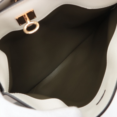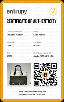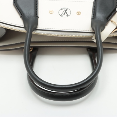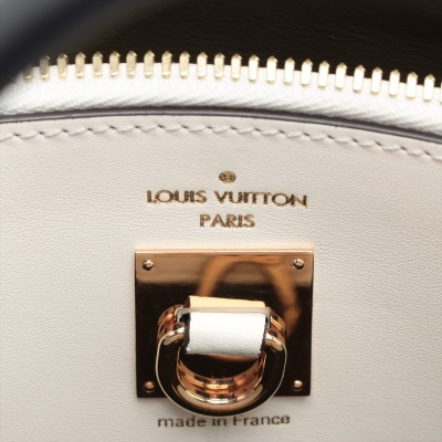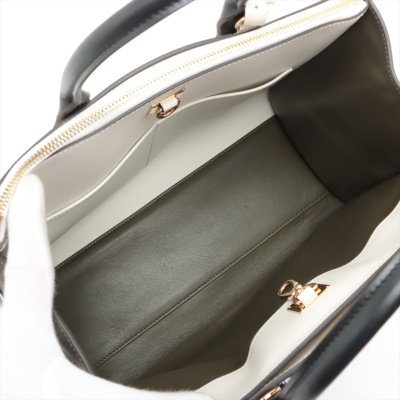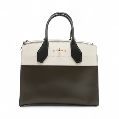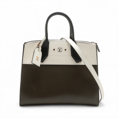 Louis Vuitton City Steamer MM in dark green & white smooth calfskin. Featuring dual leather top handles, 2 exterior compartments at front & back, gold-toned hardware. The hook closure opens to a dark green & beige leather interior with patch pockets. Approximate dimensions: 31cm(B-L) x 25cm(H) x 14cm(D), handle drop 11cm, detachable shoulder strap drop: 35cm. Accompanied by name tag, padlock, keys, LV dustbag and box. With Entrupy Certificate of Authenticity. (Pre-owned)