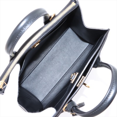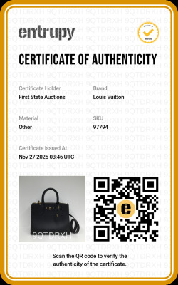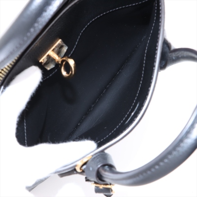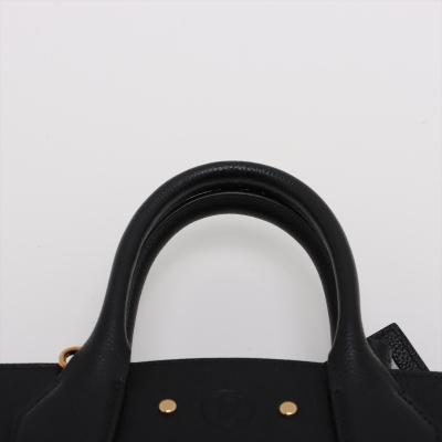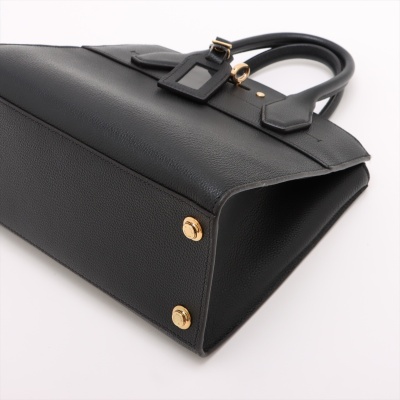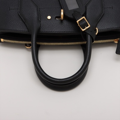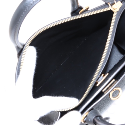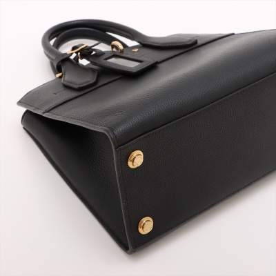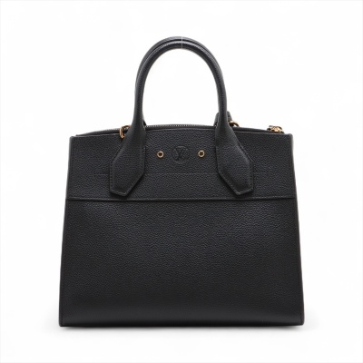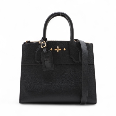 Louis Vuitton City Steamer PM 2way bag in black calfskin leather. Featuring dual top handles, exterior turn-lock compartment at front, a zipper pocket at rear, and gold-toned hardware. The hook closure opens to black leather interior with a patch pocket. Approx. dimensions: 28cm(Base-L) x 23cm(H) x 14cm(D), handle drop 9cm, detachable shoulder strap drop 54cm. Accompanied by name tag, padlock, keys & dustbags. With Entrupy Certificate of Authenticity. (Pre-owned)