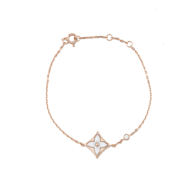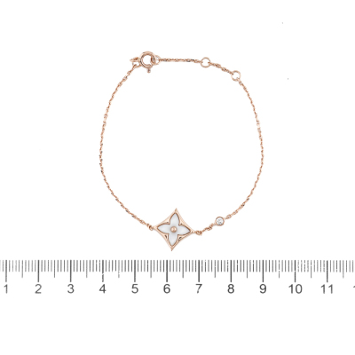 Louis Vuitton Colour Blossom BB Star bracelet with Mother of Pearl inlay and round Natural Diamond of 0.04ct. Motif size: 14mm. 18ct rose gold. Adjustable Length: 15cm - 16cm - 17.5cm. Weight: 2.9g. With Louis Vuitton pouch. (Pre-owned)