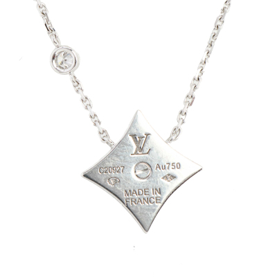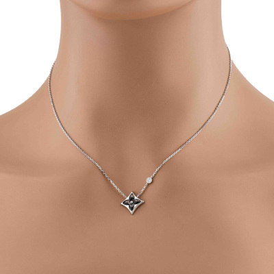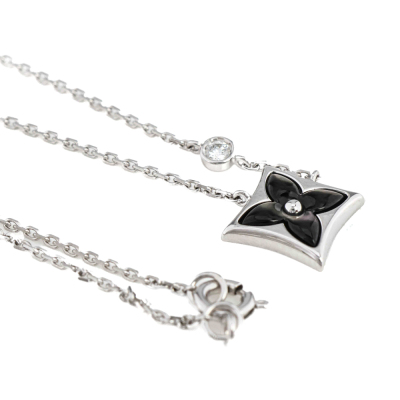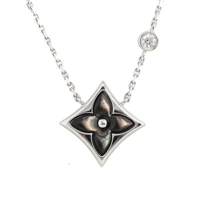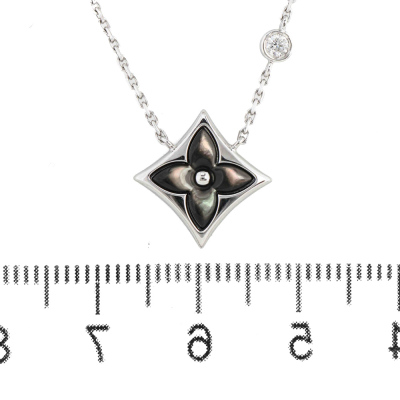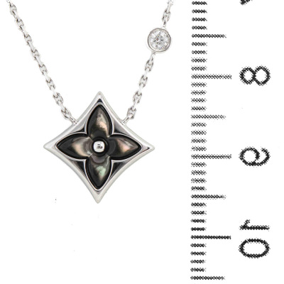 Louis Vuitton Colour Blossom BB Star pendant with black mother of pearl and a round Diamond of 0.04ct. 18ct white gold with attached chain. Length: 41cm. Weight: 3.9g. Made in France. With Louis Vuitton inner, outer box and pouch. (Pre-owned)