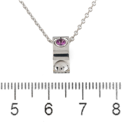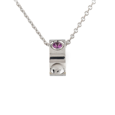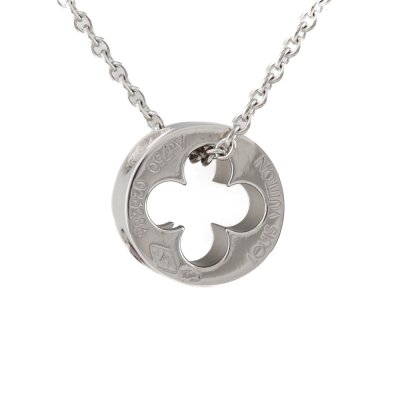 Louis Vuitton Empreinte pendant with a round natural pink Sapphire of approximately 0.10ct. Motif size: 10.9 x 10.9 x 5mm. 18ct white gold with 41cm 18ct white gold Louis Vuitton chain. Weight: 6.4g. (Pre-owned)