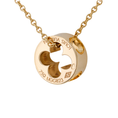 Louis Vuitton Empreinte pendant with Monogram Flower cut-out motif. Motif size: 11mm. 18ct yellow gold with 40cm Louis Vuitton 18ct yellow gold chain. Weight: 6.4g. (Pre-owned)