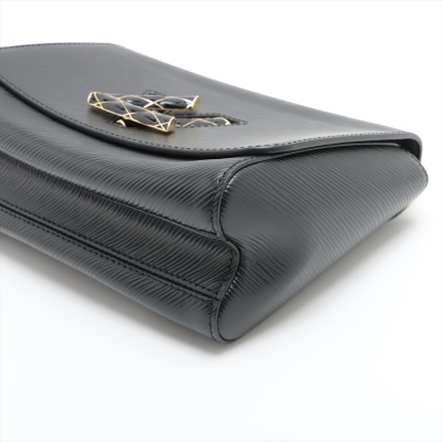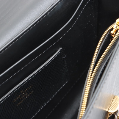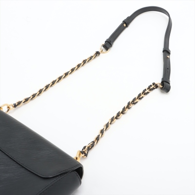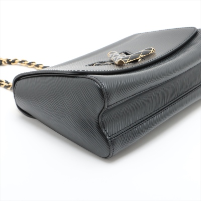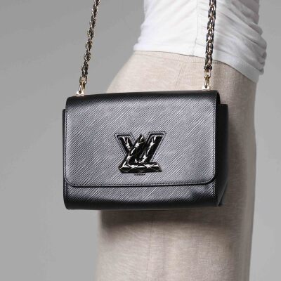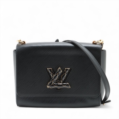 Louis Vuitton Twist MM in black Epi leather. Featuring gold-toned hardware, adjustable chain-leather strap to convert from shoulder carry to cross body wear. The front flap with detailed LV twist turn-lock opens to a black leather lining interior with a patch pocket and a zip pocket. Approximate dimensions: 23cm(L) x 17.5cm(H) x 9cm(D), 32-56cm shoulder drop. Accompanied by mirror and LV dustbag. With Entrupy Certificate of Authenticity. (Pre-owned)
