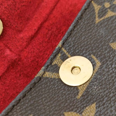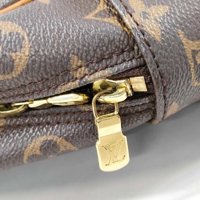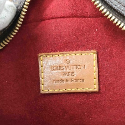 Louis Vuitton Excentri-Cite Bag in Monogram coated canvas. Featuring gold-toned hardware, dual flat top handles, and three exterior magnetic pockets. The zipper closure opens to a red microfibre interior with a patch pocket. Approximate dimensions: 25cm(L) x 27cm(H) x 13cm(D), handle drop 14cm. With Entrupy Certificate of Authenticity. (Pre-owned)