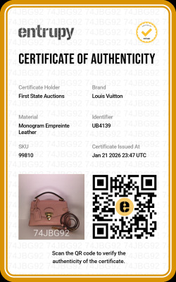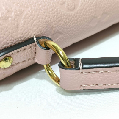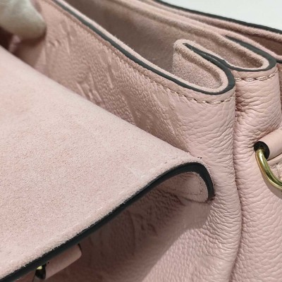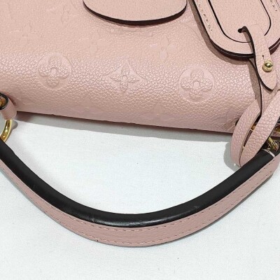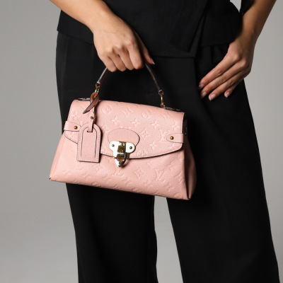 Louis Vuitton Georges BB bag in pink Monogram Empreinte leather (circa: 2019). Featuring gold-toned hardware, single leather top handle and a detachable leather shoulder strap. The magnetic button on flap opens to a partitioned microfiber lining interior in matching pink with a patch pocket. Approx. dimensions: 28cm(Base-L) x 16cm(H) x 8cm(D), with a 8cm handle drop and 53cm adjustable strap drop. Accompanied by a Louis Vuitton leather name tag and dustbag. With Entrupy Certificate of Authenticity.