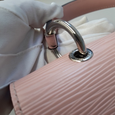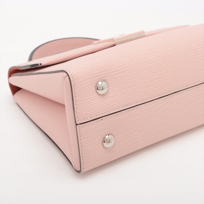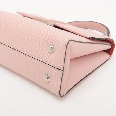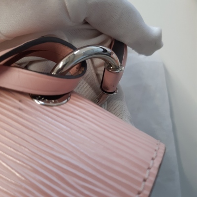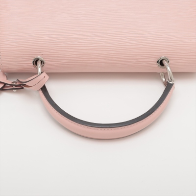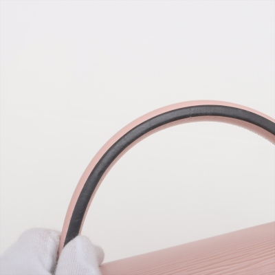 Louis Vuitton Grenelle PM in light pink Epi leather. Featuring silver-toned hardware, looping leather top handle with silver ring links, an flap with LV logo and magnetic closure. This opens to an orange microfibre interior with a zip pocket. Approximate dimensions: 26cm(Base-L) x 18cm(H) x 11cm(D), handle drop 9cm, detachable shoulder strap drop 54cm. Accompanied by detachable name tag. With Entrupy Certificate of Authenticity. (Pre-owned)