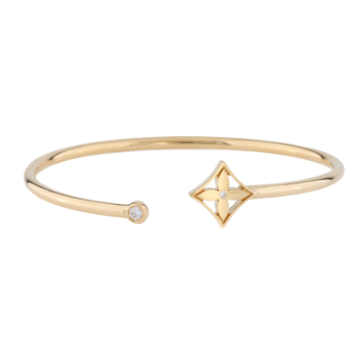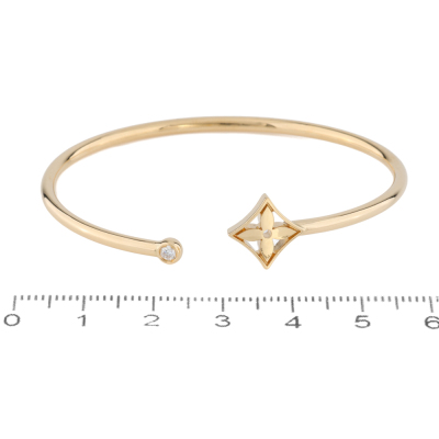 Louis Vuitton Idylle Blossom Twist bracelet with a round Natural Diamond of 0.06ct. 18ct yellow gold. Louis Vuitton stamped wrist size 15. (equivalent to Louis Vuitton size Medium). Internal circumference: 15cm. Width: 2.3mm. Weight: 6.0g. With Louis Vuitton box. (Pre-owned)