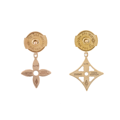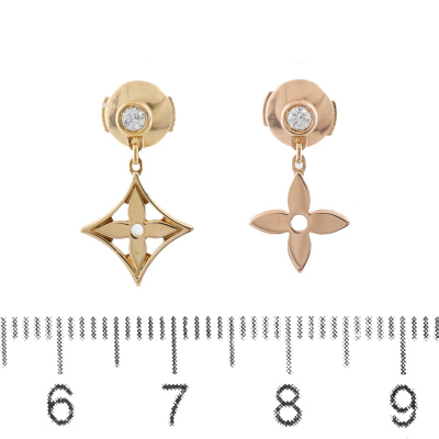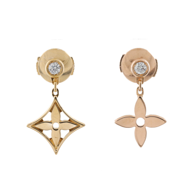 Louis Vuitton Idylle Blossom Ear studs with 2 round Natural Diamonds totalling 0.08ct. One with 18ct yellow gold and one with 18ct rose gold. Weight: 2.3g. With Louis Vuitton inner and outer box. (Pre-owned)