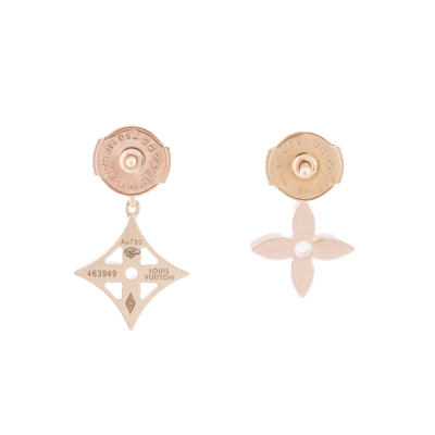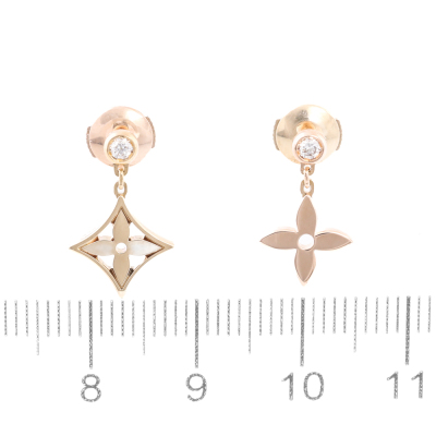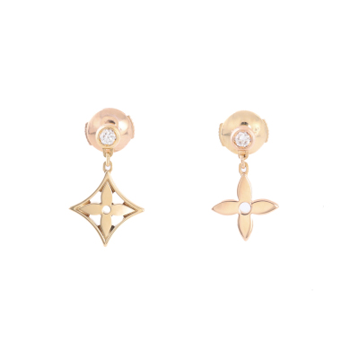 Louis Vuitton Idylle Blossom Ear Studs with 2 round Natural Diamonds totalling 0.08ct (Estimated grading: F-G VS). 18ct yellow gold & 18ct rose gold. Weight: 2.3g. With 2 x Louis Vuitton Certificate card dated 18/09/2017 and Louis Vuitton inner & outer box. (Pre-owned)