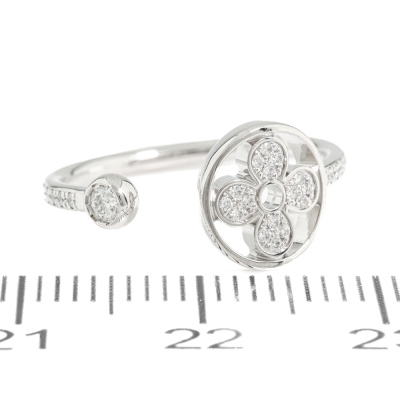 Louis Vuitton Idylle Blossom Pave Diamond ring with round Natural Diamonds totalling approximately 0.18ct. 18ct white gold. Louis Vuitton stamped size 49, measures as Australian size: I 1/2 - ring resizing is not recommended. Made in France. Total weight: 2.0g. (Pre-owned)