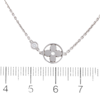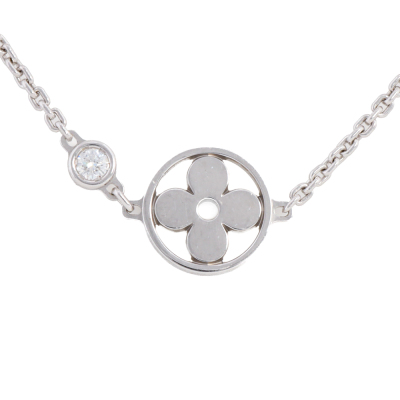 Louis Vuitton Idylle Blossom pendant with a round Natural Diamond of 0.04ct. 18ct white gold with attached Louis Vuitton chain. Adjustable max length: 38cm - 40cm. Weight: 4.5g. With Louis Vuitton box. (Pre-owned)