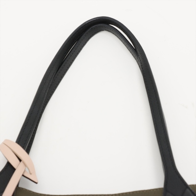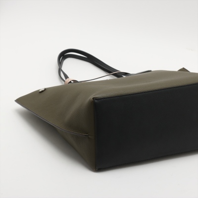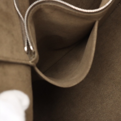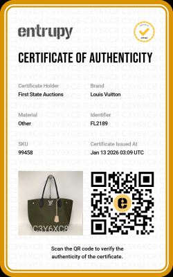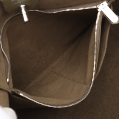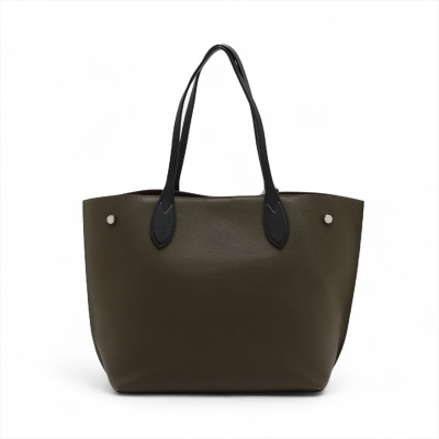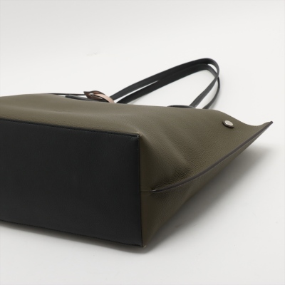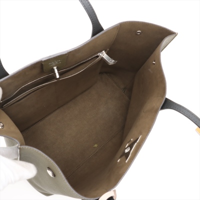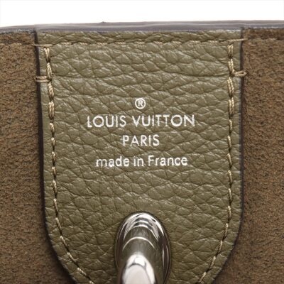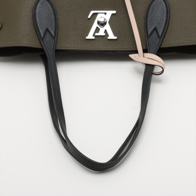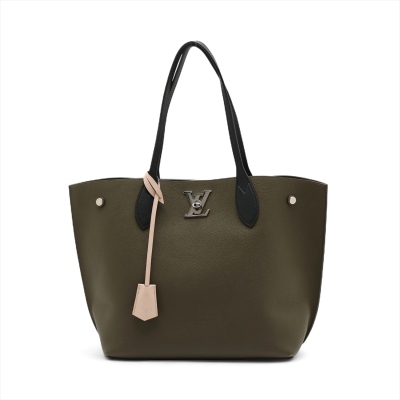 Louis Vuitton Lockme Go tote bag in green calfskin leather (Circa: 2019). Featuring black leather top handles, silver-toned hardware, button closures and LV logo at front. The turn-lock closure opens to a green microfibre interior with a zip pocket and patch pockets. Approximate dimensions: 31cm(L) x 29.5(H) x 15cm(D), and 21.5cm handle drop. Accompanied by a Louis Vuitton detachable beige leather clochette, keyring and care card. With Entrupy Certificate of Authenticity. (Pre-owned)