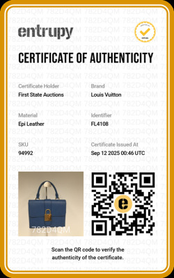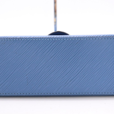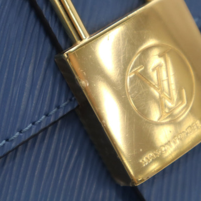 Louis Vuitton Locky BB in Blue Jean Epi leather. Featuring gold-toned hardware, single rolled top handle, and front flap with decorative padlock button closure. This opens to a tonal microfibre interior with a patch pocket. Approximate dimensions: 21cm(L) x 16cm(H) x 8cm(D), handle drop 8cm, adjustable & detachable shoulder strap drop 59cm. With Entrupy Certificate of Authenticity. (Pre-owned)