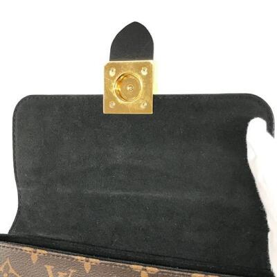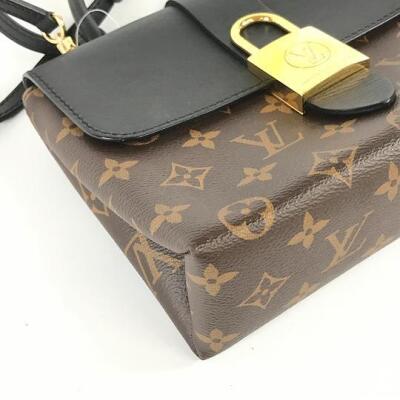 Louis Vuitton Locky BB in Monogram coated canvas and smooth black cowhide leather. Featuring gold-toned hardware, single rolled top handle, adjustable and detachable shoulder strap, and front flap with padlock decorated magnetic button closure. This opens to a black suede interior with a patch pocket. Approximate dimensions: 21cm(L) x 16cm(H) x 7.5cm(D), handle drop 8cm, strap drop 59cm. With Entrupy Certificate of Authenticity.