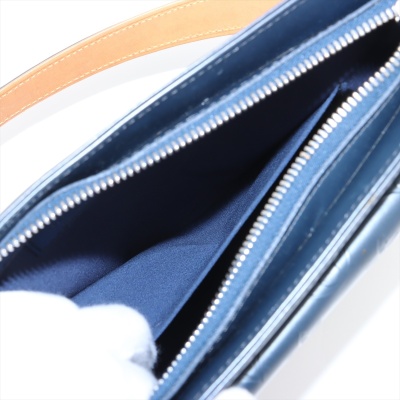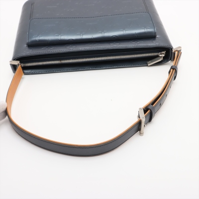 Louis Vuitton Mat Alston shoulder bag in matte blue Monogram embossed leather. Featuring silver-toned hardware, external front pocket with flap, and adjustable strap in vachetta cowhide leather. The zipper closure opens to a navy fabric interior with two patch pockets. Approximate dimensions: 30cm(L) x 19.5cm(H) x 8.5cm(D), strap drop 31cm adjustable. With Entrupy Certificate of Authenticity. (Pre-owned)