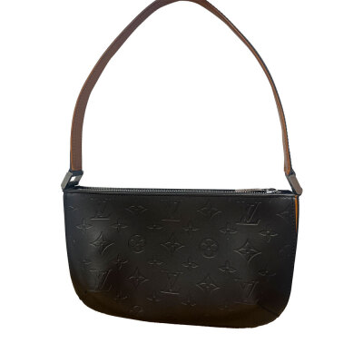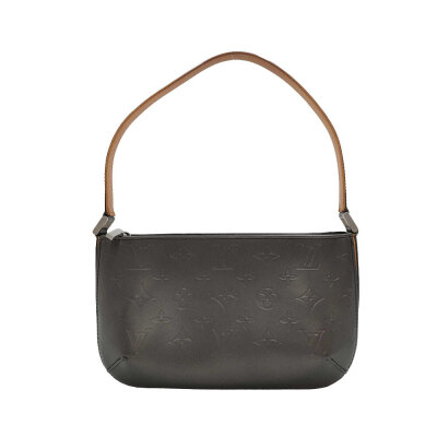 Louis Vuitton Mat Fowler shoulder bag in dark grey matte Monogram embossed leather and vachetta leather trim. Featuring silver-toned hardware, flat leather top handle, and zipper top closure. This opens to a black textile interior. Approximate dimensions: 24cm(L) x 15cm(H) x 3.5cm(D), handle drop 18cm. With Entrupy Certificate of Authenticity. (Pre-owned)